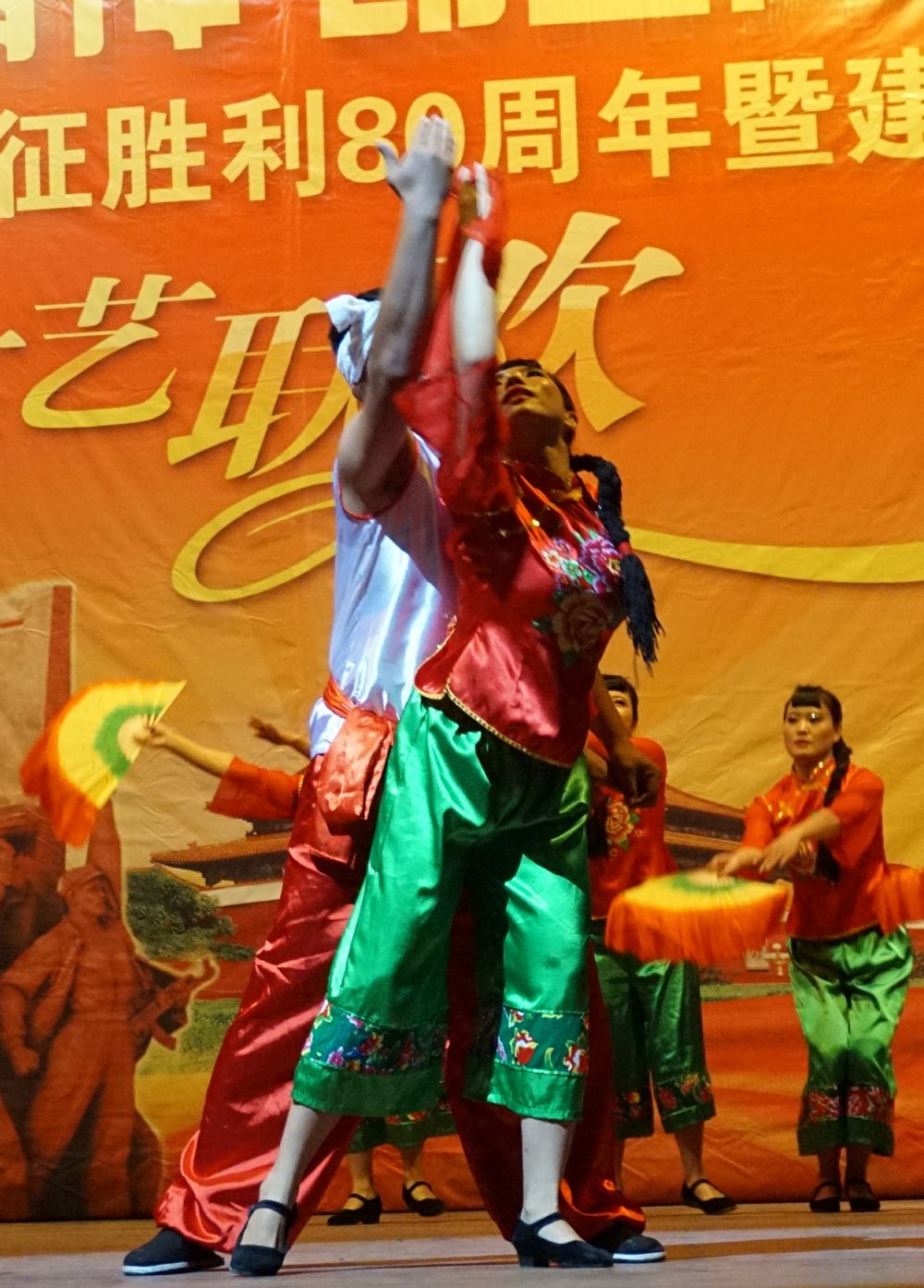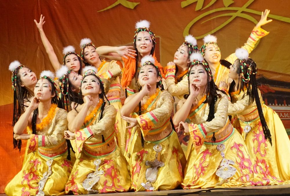 紅綢彩扇迎風舞  祝福祖國情義濃