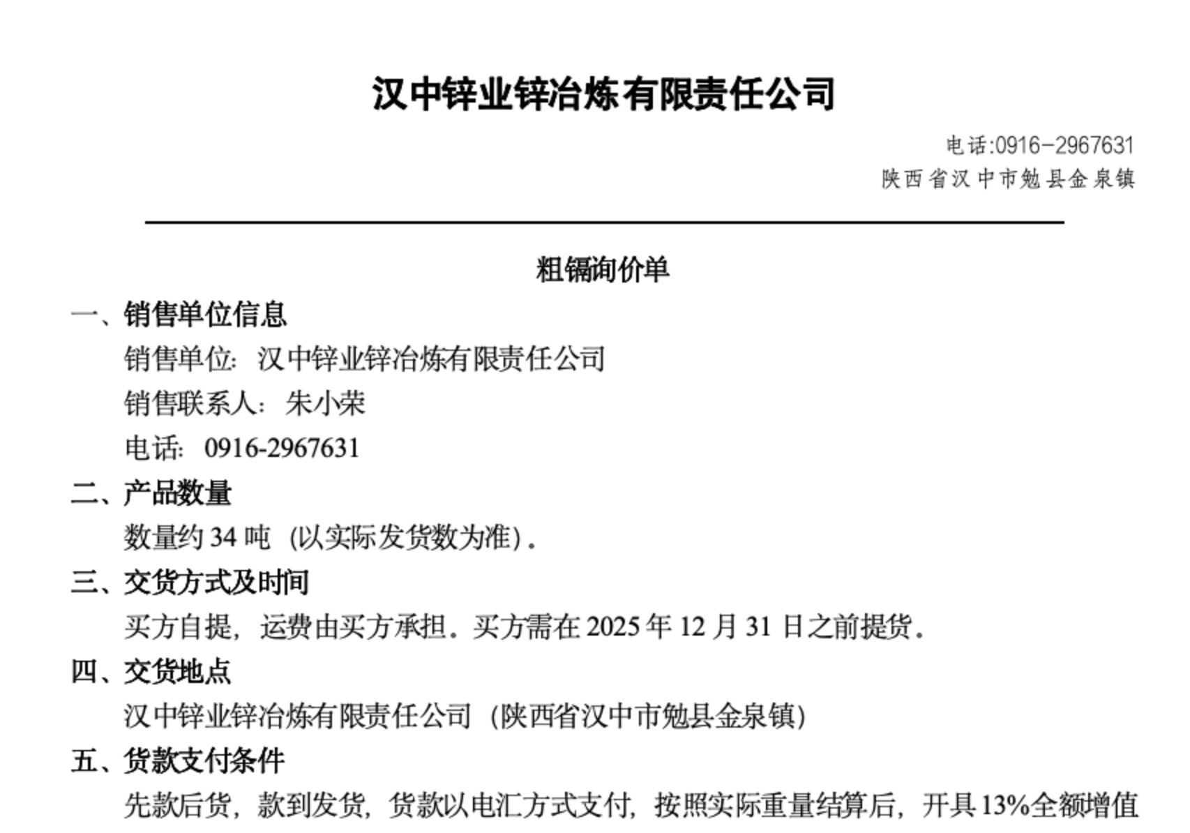 鎘錠詢價單-鋅冶煉